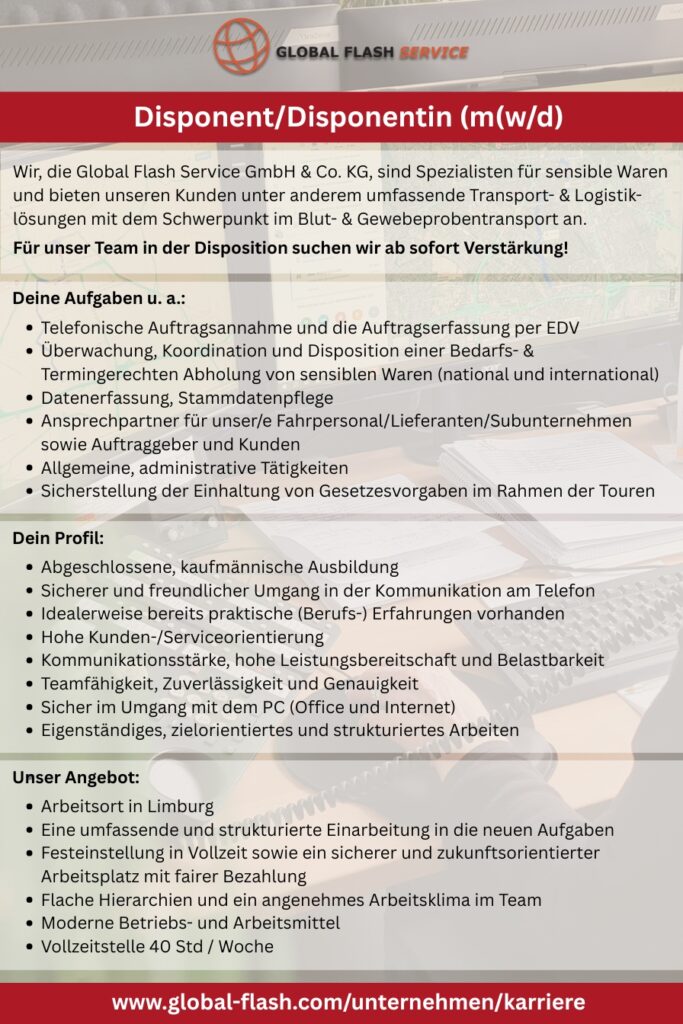Wir suchen ab sofort Verstärkung für unser Dispo-Team: